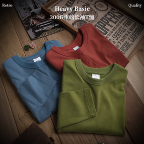 300G秋季重磅欧美纯棉日系美式复古纯净色圆领打底...