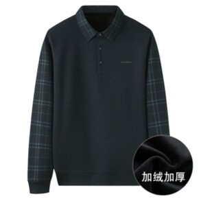 大码男加绒长袖T恤加肥加大秋冬季中老年爸爸翻领宽松...