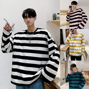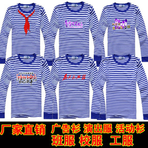 厂家直销 海魂衫长袖圆领纯棉T恤印花条纹水手服秋衣...