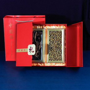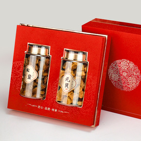 红色精美双拼礼盒花旗参石斛包装盒鲍鱼元贝礼盒250...