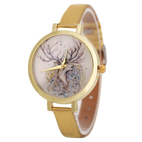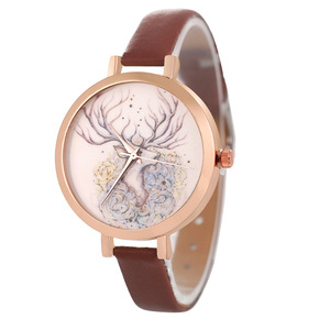 淘宝热卖 韩版休闲个性简约动物图案石英手表细皮革合...