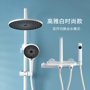 白色恒温淋浴花洒套装家用全铜浴室增压喷头混水阀枪灰...