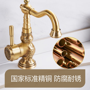 全铜卫生间厨房款仿古色水龙头洗手盆混水阀冷热水二合...