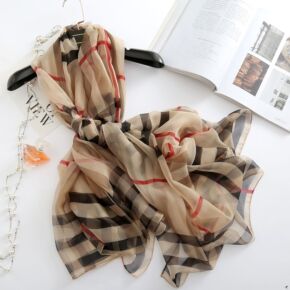 2021秋冬新款韩版格子真丝羊毛混纺围巾气质金丝两...
