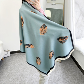 2021方格纹围巾披肩图案秋冬保暖女棉涤礼品厂家批...