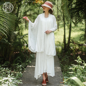 北方部落原创2021夏季纯色百搭连衣裙文艺气质棉麻...