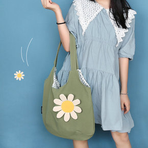 三色补丁小雏菊包包女2021新款日系少女小清新布包...