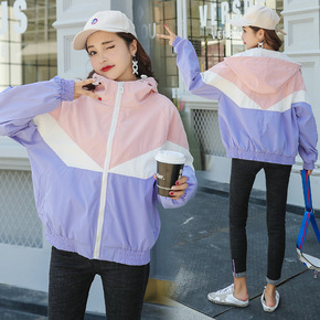休闲拼色棒球服外套女2021秋冬新款韩版学院风清新...