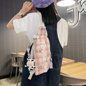 复古森系格子软妹小清新胸包2021秋季新款休闲单肩...