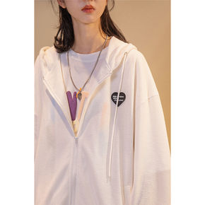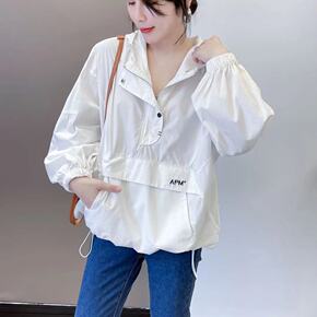 2021秋季新款清新甜美文艺简约纯色连帽宽松长袖短...