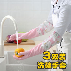 厨房洗碗手套女加厚塑胶冬季洗衣服刷碗防水加长冬天家...