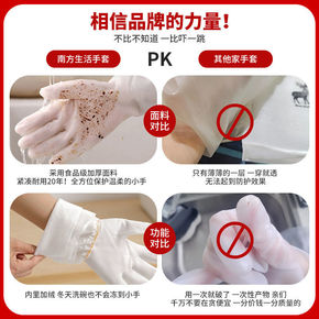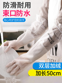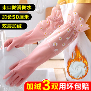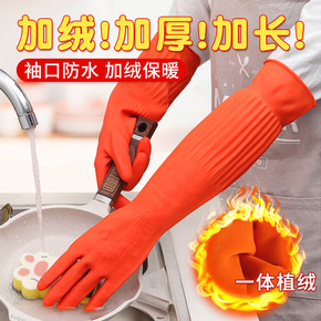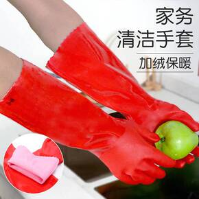 乳胶加厚一体绒手套耐用型厨房冬天洗碗橡胶手套女家务...