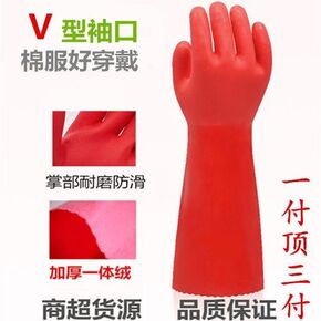 加厚棉一体绒长袖洗碗冬保暖洗车洗衣手套劳保耐磨男女...