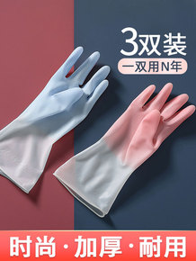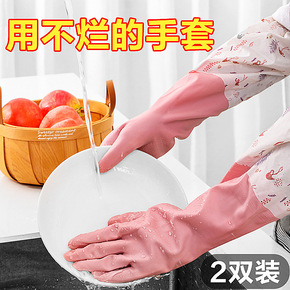 厨房洗碗乳胶手套耐用薄款橡胶塑胶洗衣服手套防水家务...