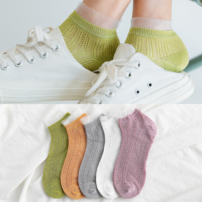 袜子女春夏季透气网眼镂空纯色隐形船袜女休闲短袜棉质...