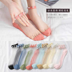 网红珍珠水晶袜 2022春夏韩版女袜玻璃丝袜 珍珠...
