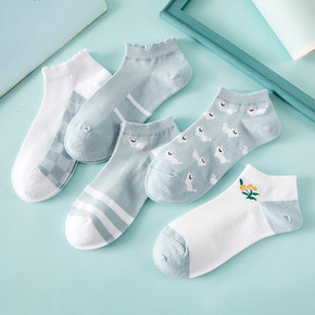 春夏新款女士短筒网眼船袜 全棉纯色透气女士船袜 女...