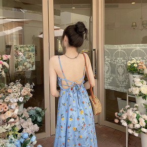 巴厘岛度假裙海边沙滩裙性感露背吊带连衣裙ins超仙...