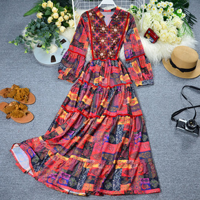 *实拍旅行女装摩洛哥旅游度假民族风连衣裙复古显瘦沙...
