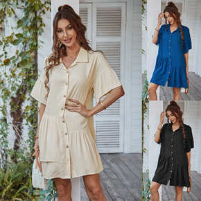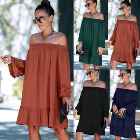 自主实拍欧美亚马逊性感一字肩连衣裙2021纯色宽松...