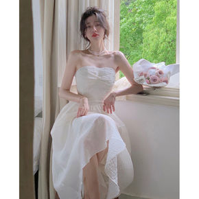 夏季女装2022新款白色小香风仙女气质温柔风中长款...