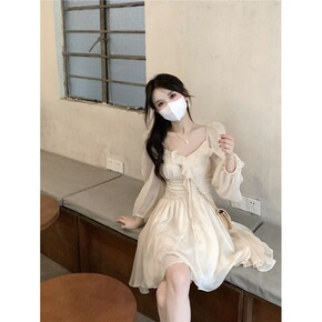 法式气质连衣裙女2022秋季新款仙女裙子收腰显瘦气...
