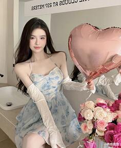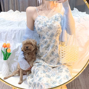 繁花落尽碎花吊带连衣裙女2022春夏季新款温柔风仙...