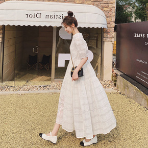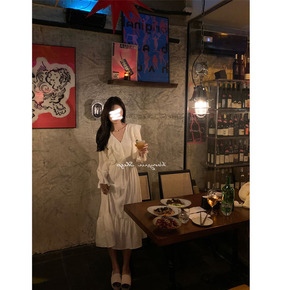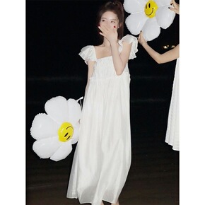 实拍新款温柔风法式甜美炸街长裙小清新白色初恋a字连...
