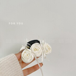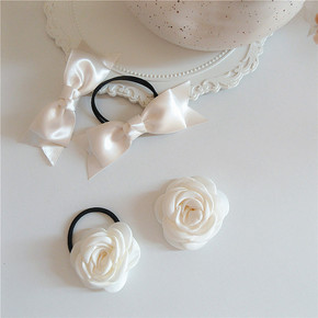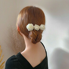 高级感立体玫瑰花发夹发绳复古缎面感边夹发卡女奶油色...