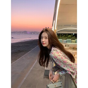 2021早秋新款法式复古时尚宽松慵懒温柔气质日落玫...