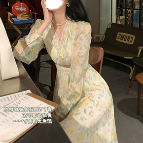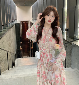法式气质款碎花连衣裙女设计感秋季新款长裙文艺温柔风...