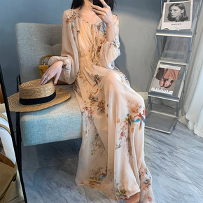 温柔风法式复古碎花雪纺春夏2021新款仙女裙气质中...