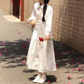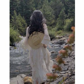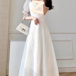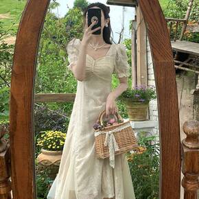 法式初恋白色蕾丝连衣裙女夏复古收腰显瘦仙女长款气质...