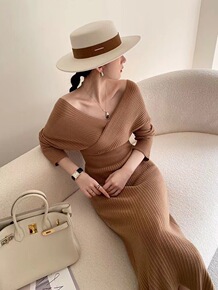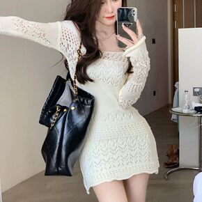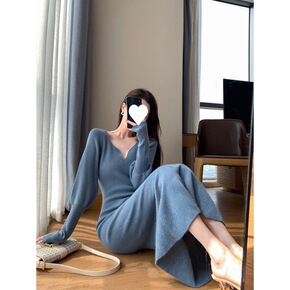 秋冬法式内搭打底中长款毛衣裙过膝针织鱼尾连衣裙女温...