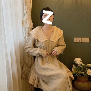 现货 法式复古气质甜美蕾丝连衣裙女秋冬季收腰打底...