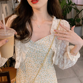 温柔系复古碎花连衣裙法式茶歇泡泡袖中长裙女夏季20...