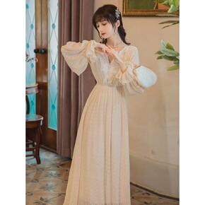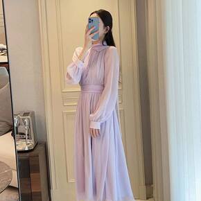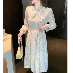 雪纺碎花连衣裙女2022秋季新款法式复古收腰显瘦温...
