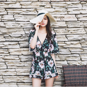 2020新款小碎花分体性感长袖钢托泳衣女度假温泉仙...