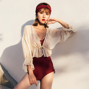 2021X新款纯色连体温泉韩版现货黑色遮肉性感聚拢...