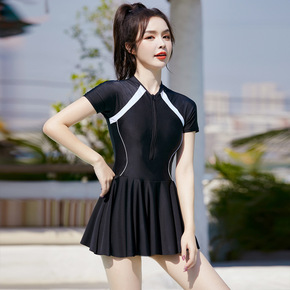 泳衣女平角连体裙式新款学生可爱运动长短袖显瘦性感温...