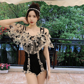 时尚夏连体遮肚显瘦女神泳装蕾丝荷叶边小胸聚拢保守温...