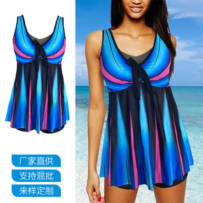 泳衣女大码胖mm200斤分体裙式保守遮肚肉显瘦三件...