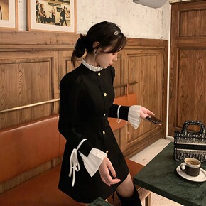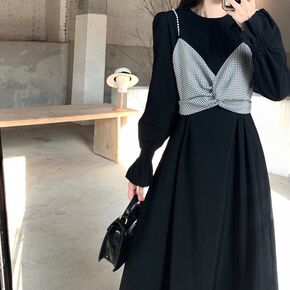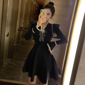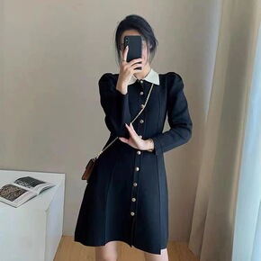 早春女装法式复古显瘦气质高级感小黑裙御姐赫本风黑色...