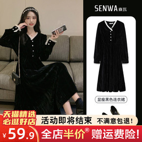 春装2022年新款大码女装胖mm黑色丝绒连衣裙子秋...