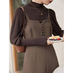 港风复古春季微透网纱连衣裙+吊带内搭中长裙女两件套...