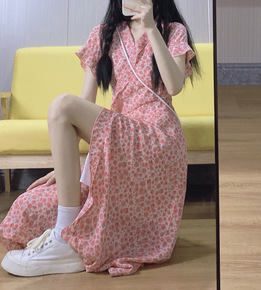 2022年夏季新款一片式雪纺碎花连衣裙子茶歇法式初...