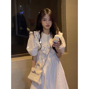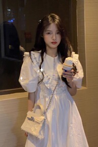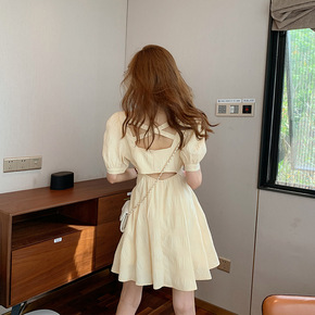 可盐可甜法式茶歇裙子女夏设计感小众初恋甜美泡泡袖连...