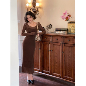 设计感翻领连衣裙子小众港风修身名媛复古气质裙子20...