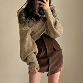 复古毛衣港风复古气质针织开衫裹胸+高腰半身裙三件套...