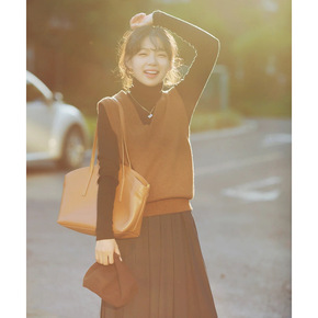 三件套装/单件V领长袖学院风jk制服毛衣针织衬衫开...